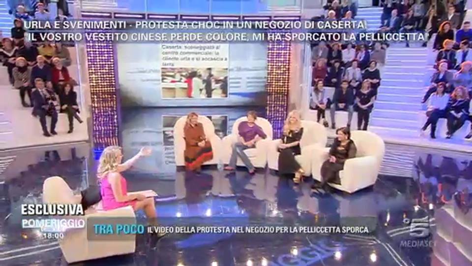 Barbara D’Urso durante la consueta puntata di Pomeriggio 5, ha ospitato la signora Rossana Magliulo, protagonista di un video diventato virale sul web; la partenopea infatti è stata al centro di un’accesa polemica in un negozio in provincia di Caserta, per aver acquistato un abito da cerimonia che nel corso della stessa ha creato dei problemi alla sua pelliccetta posta come soprabito. La vicenda è stata ripresa in incognito diventando virale sul web. In studio tra gli opinionisti che hanno commentato la vicenda, c’era anche la famosa Marchesa d’Aragona che nel rivolgersi alla donna utilizzava termini decisamente aulici, tanto che la padrona di casa ha asserito: “Marchesa, parla come mangi!”.