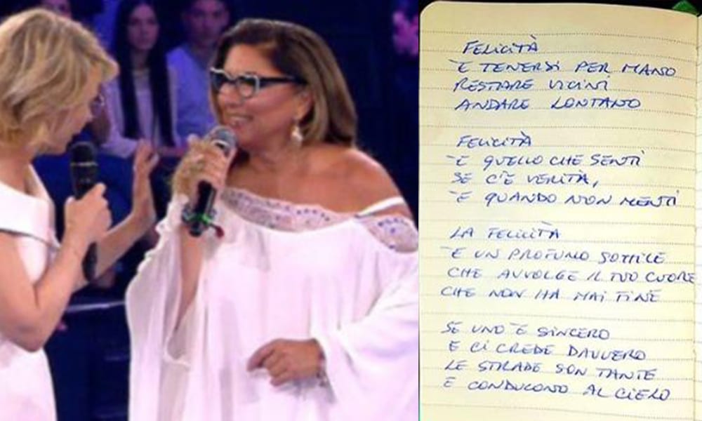 Nella puntata del 19 maggio di Amici di Maria De Filippi, tra gli ospiti della serata abbiamo ritrovato Al Bano e Romina. La coppia più discussa del momento si è esibita in una versione “inedita” del loro evergreen Felicità. Nello specifico, Romina Power si è dilettata a rappare sulla melodia un testo abbastanza polemico nei confronti dei conduttori italiani: Romina è entrata in studio cantando “La felicità è una televisione che non sia di parte che non abbia padrone. Conduttori venduti per vile denaro”. Ovviamente la padrona di casa ha risposto prontamente, difendendo la sua posizione. Intanto in molti, soprattutto sul web, non hanno ben compreso le barre intonate dall’artista americana. Così, per arrivare al suo obiettivo, la Power ha postato il testo scritto di suo pugno su Instagram. Eccolo: