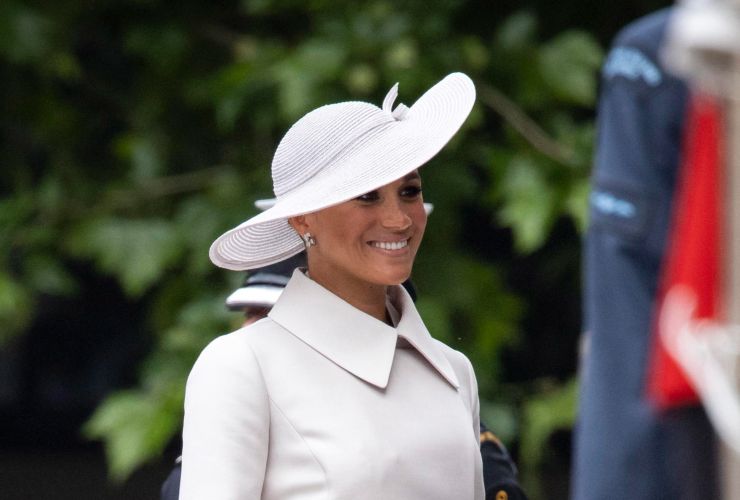 Sulle spalle, inoltre, Meghan Markle indossava anche un maglione nero a maniche lunghe legato sulle spalle e chiuso sul davanti. Passando agli accessori, invece, ha completato il suo look con un paio di sandali bassi marroni con cinturino. Per i gioielli ha deciso di limitare la scelta ad un bracciale d’oro e un orologio. Capelli raccolti in maniera casual e occhiali da sole neri oversize hanno completato il look. Il suo outfit alla mano e semplice da replicare ha colpito molto i fan e in poco tempo è diventato virale anche sui social.