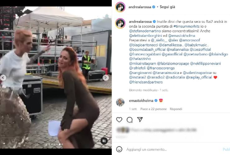 Non c’è nessuna differenza passare dal palco con milioni di persone dinanzi al dietro le quinte ed essere circondata da tecnici, camerini e passi frenetici che lottano contro i secondi tra una pubblicità e una messa in onda. Andrea Delogu mantiene il ritmo anche dietro l’angolo del palco ballando e cantando mentre l’ospite esegue la sua performance. Poi, se a raggiungerla è la sua amica Ema Stokholma il volume della musica si alza e tutti a scatenarsi dietro le quinte, come raccontano le Instagram Stories e post dei profili social delle due conduttrici. Ema e Andrea rappresentano un duo pazzesco. Frizzante, insolito e amabile dai fan che non perdono mai un loro momento condiviso con il pubblico social.