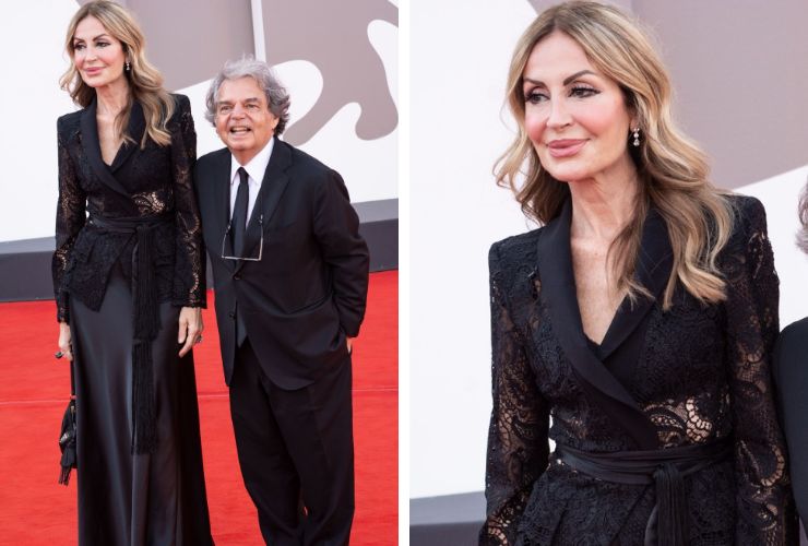 Certo è che tutti gli occhi erano puntati sul suo red carpet in compagnia della moglie Tommasa Giovannoni. Mentre il ministro ha optato per un classico smoking con cravatta, la moglie ha incantato il tappeto rosso con un’eleganza evergreen optando per un completo total black con gonna in raso e blusa wrap ricamata in pizzo.