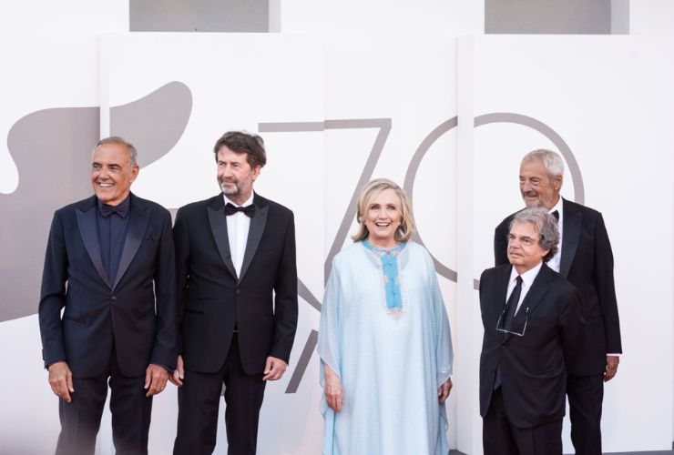 Alla serata inaugurale della Mostra del cinema di Venezia 2022 ha presenziato anche Hillary Clinton. L’ex First Lady d’America e moglie di Bill Clinton è apparsa sul tappeto rosso indossando un caftano turchese. La sua permanenza al Lido è giustificata dal fatto che l’ex First Lady nei prossimi giorni ritirerà un premio da parte di Diane von Fürstenberg. Hillary Clinton è stata accolta da applausi e grandi sorrisi e, sul red carpet, ha posato anche al fianco del ministro Brunetta.