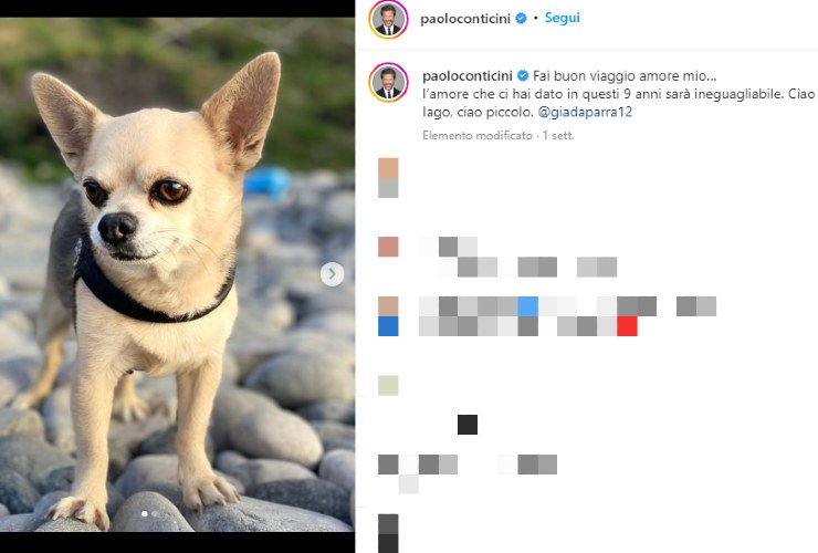 Di lui, inoltre, Paolo Conticini aveva parlato anche in un’intervista rilasciata a La Stampa, nella quale aveva dichiarato: “Iago è uno di noi, un familiare, un amore vero, puro, perché solo un cane sa dare un amore così incondizionato“. E anche nel suo ultimo saluto, l’attore non si è risparmiato condividendo un emozionante saluto verso il suo amico a quattro zampe, affermando: “Fai buon viaggio amore mio… l’amore che ci hai dato in questi 9 anni sarà ineguagliabile. Ciao Iago, ciao piccolo.” In molti hanno espresso vicinanza nei confronti dell’interprete, tra cui anche alcuni colleghi. Tra tutti, Sandra Milo ha manifestato la sua solidarietà, commentando: “Un grande abbraccio colmo di comprensione e sincero affetto.” Anche Carolyn Smith ha espresso la sua, chiosando: “Mi dispiace tanto. So cosa si sente quando perde un amore grande. Un abbraccio“. Di seguito, il post in questione.