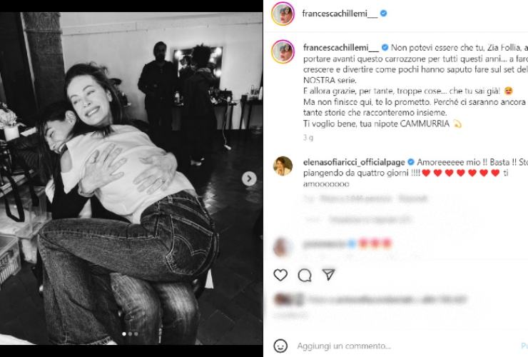 Dopo aver spiegato perché Elena Sofia Ricci ha lasciato Che Dio ci aiuti 7, l’attrice è pronta a nuovi ruoli in serie televisive rai come Fiori sopra l’inferno e proseguire la sua carriera a teatro. Chissà se con Francesca Chillemi ci sarà di nuovo l’opportunità di condividere lo stesso set. A tal proposito è la stessa Chillemi a scrivere un messaggio che evidenzia una particolarità, ovvero un possibile lavoro o progetto da fare insieme: “Non finisce qui, te lo prometto. Perché ci saranno ancora tante storie che racconteremo insieme”. I messaggi hanno continuato a riempire il post social con altrettanti ringraziamenti reciproci. Francesca Chillemi ha poi concluso con un ti voglio bene firmandosi col soprannome datole dalla stessa attrice Elena Sofia Ricci, ovvero “nipote Cammurria“. Ora non c’è che da aspettare l’inizio della settima stagione e scoprire – come dicono le anticipazioni – un’Azzurra più matura.