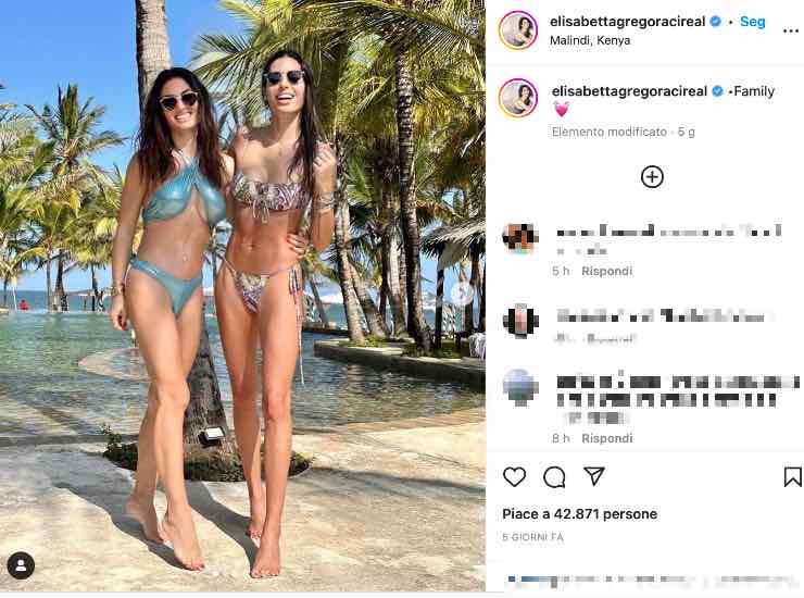 Marzia ed Elisabetta si sono concesse qualche scatto per i social. Le due sono apparse felici e sorridenti in riva al mare cristallino del Kenya in bikini. Un Natale alternativo e al caldo, che ha conquistato però subito il consenso dei followers. In tanti, infatti, sotto la loro foto hanno elogiato il loro fisico. Entrambe le sorelle sono bellissime e con il loro sorriso smagliante ancora di più. I like sono fioccati sotto il loro scatto social. Le due hanno un bellissimo rapporto, nonostante siano spesso distanti a causa degli impegni lavorativi della showgirl che la tengono spesso occupata. Ma questa volta le due sorelle non hanno perso l’occasione per trascorrere le feste invernali in dolce compagnia.