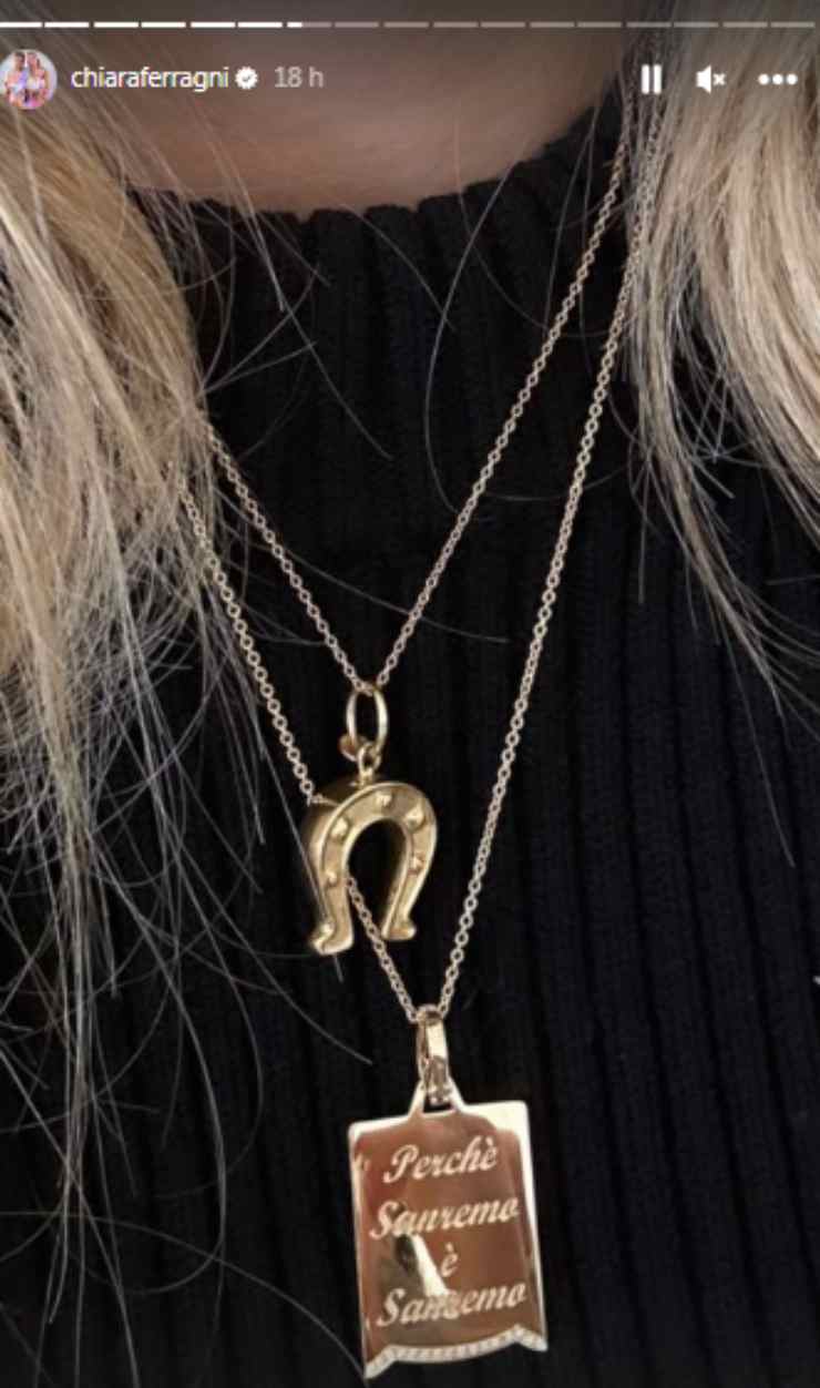 Avete notato la collana di Chiara Ferragni prima di Sanremo? Credits: Instagram (velvetgossip.it)