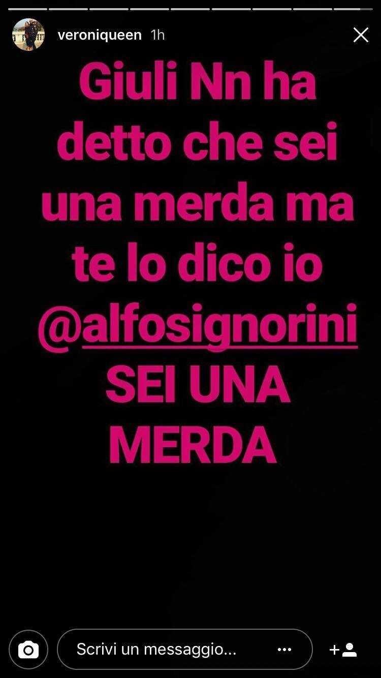 Sui social non a tutti i fan di Giulia è piaciuto l’atteggiamento di Signorni, che per alcuni sembra essersela presa con la giovane senza un reale motivo apparente. La sorella della De Lellis, Veronica, ha deciso di prendere le parti della sorella minore e attraverso delle Instagram Stories ha espresso in maniera colorita che cosa pensa del direttore di Chi. Anche Ilary Blasi infine ha invitato la giovane a comportarsi più rispettosa.