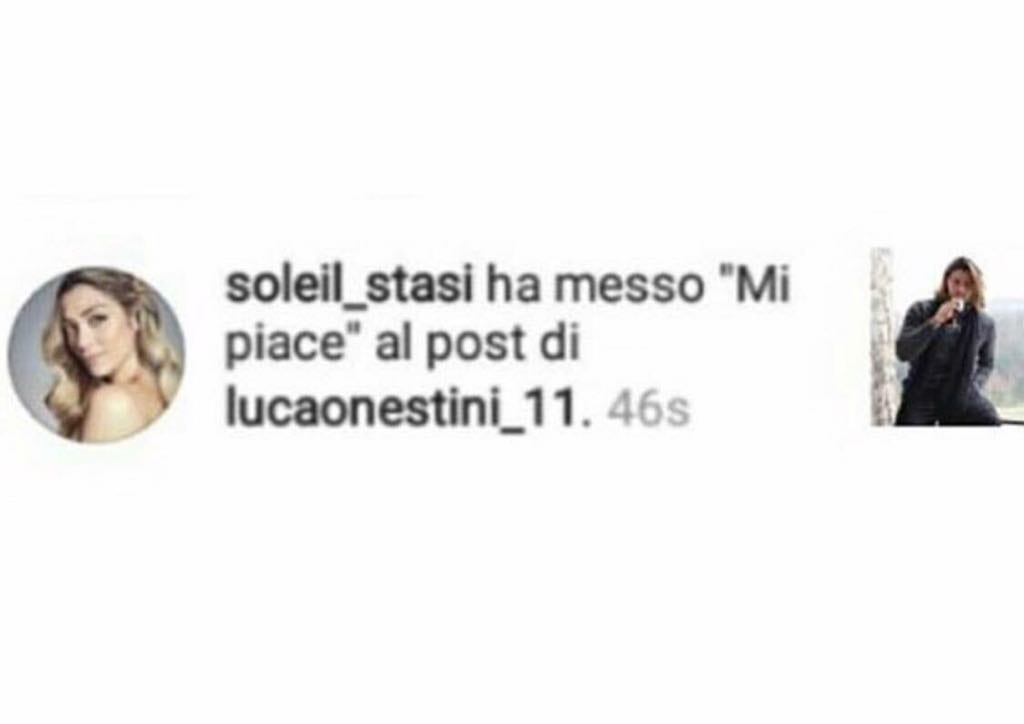 Cos’ha combinato stavolta la Sorge per essere nel mirino del web? Ha iniziato a circolare sui social, scatenando l’ironia generale, lo screen di un like che Soleil avrebbe lasciato sotto uno degli ultimi scatti postati su Instagram dal suo ex fidanzato Luca Onestini. I commenti degli utenti al riguardo hanno tutti lo stesso tono di derisione; “quando un’opera di stalkeraggio finisce male”, “quando apprezzi ancora il tuo ex“, “epica fail”.