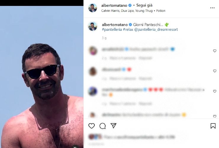 Scorrendo le immagini della galleria di Alberto Matano, vediamo che, prima di raggiungere la Puglia, i neo coniugi non siano approdati a Pantelleria. “Un po’ di sole e di me”, scrive Matano in calce al post mostrandosi con un nuovo taglio di capelli. La chioma più corta per combattere le alte temperature e i lunghi bagni nelle acque blu del sud saltano agli occhi dei più curiosi. Meduse che si intravedono al di sotto delle acque cristalline, numerosi e alti fico d’india che contrastano l’azzurro cielo. Tutto documentato in un recente video pubblicato su Instagram e dal quale noi di Velvet Gossip ne alleghiamo il fermo immagine di un frame.