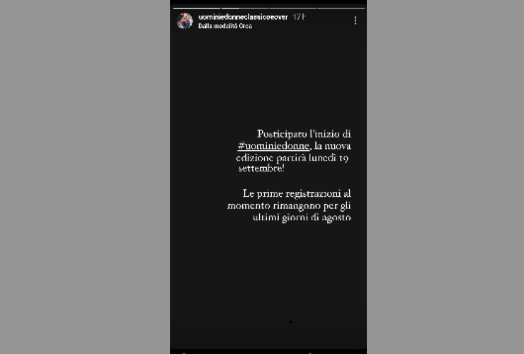 Lorenzo Pugnaloni, esperto della trasmissione, ha difatti comunicato che il programma slitterà di una settimana. “Posticipato l’inizio di #uominiedonne, la nuova edizione partirà lunedì 19 settembre! Le prime registrazioni al momento rimangono per gli ultimi giorni di agosto“, ha fatto sapere attraverso le proprie Instagram Stories alcune ore fa. Non è chiaro cosa sia successo e cosa abbia comportato questo ritardo nella messa in onda, fatto sta che anche la settima edizione del GF Vip inizierà il 19 settembre. Anche il reality di Canale 5, condotto per la quarta edizione consecutiva da Alfonso Signorini, era inizialmente previsto per lunedì 12 settembre. Insomma, il pubblico dovrà attendere ancora un po’, ma le premesse per una nuova e scoppiettante stagione televisiva ci sono tutte.