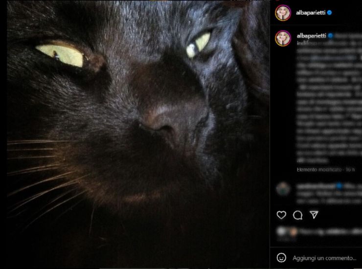 “Avrei tanto voluto piangere e non potevo. Eri così indifeso e sofferente da stringere il cuore. Proprio questa settimana senza poterti dare un ultimo abbraccio. Eri famiglia per me che famiglia non ho più. Mi mancherà trovarti ad aspettarmi. Mi struggo al tuo pensiero perché non ti vedrò mai più. Corri veloce, quando torno a casa ti immaginerò sempre entrare e accoccolarti sul mio letto nelle notti di pioggia e dormire insieme alle tua fusa”. Queste sono solo alcune delle frasi che la Parietti ha scritto sul suo post, corredata di fotografia dove vi è un primissimo piano del gatto dal pelo nero corvino.