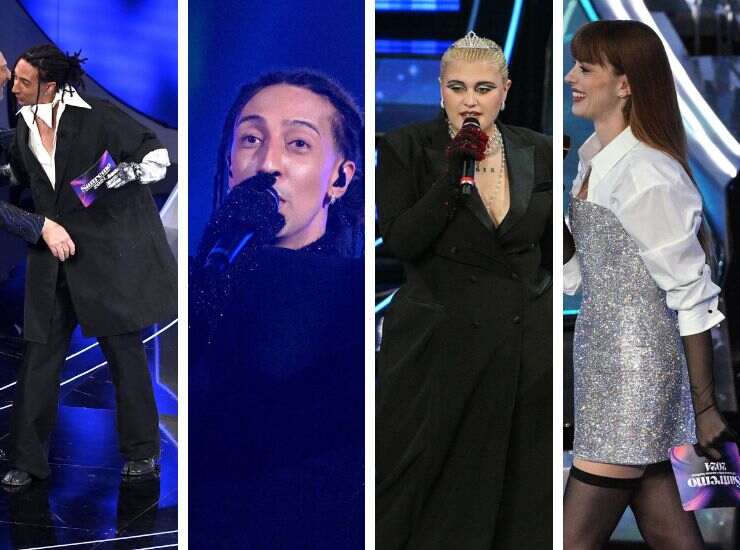 L’ha fatto nel corso della seconda serata, scegliendo un paio effetto inchiostro da abbinare al completo di Maison Margiela. L’ha rifatto nella serata dei duetti con guanti bianchi tempestati di strass e anche nella finale, con un paio in velluto nero e glitter. Total black anche quelli proposti da Big Mama nel corso della terza serata di Sanremo 2024, ma accompagnati da glitter rossi. Annalisa, invece, ha scelto guanti in chiffon nero, trasparenti, che ravvivano l’abito Dolce&Gabbana.